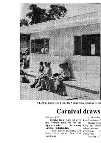 CLUB members relax beside the Ngaruawahia Amateur Swimming Club