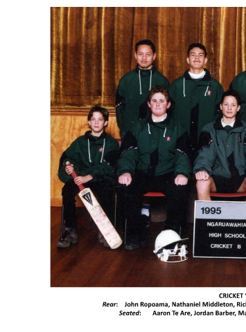 CRICKET “B Rear: John Ropoama, Nathaniel Middleton, Richard Lloyd, Kelly Reid, Edward Meredith [Coach]. Seated: Aaron Te Are, Jordan Barber, Marrin Haggie, James Dawson, Vaughan Blair.