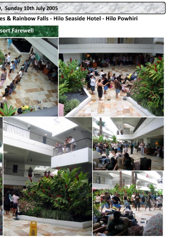 HAWAIIAN TOUR DAY 10, Sunday 10th July 2005 Royal Sea-Cliffs Resort Farewell - To Hilo - Naha Stones & Rainbow Falls - Hilo Seaside Hotel - Hilo Powhiri Sea-Cliffs Resort Farewell