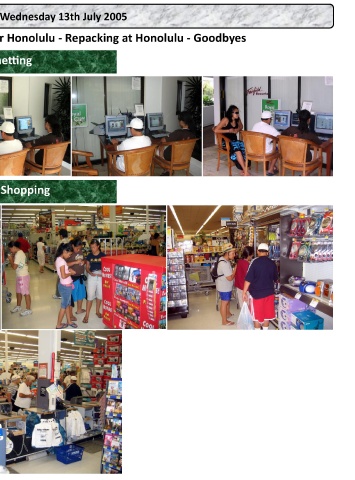 HAWAIIAN TOUR DAY 13, Wednesday 13th July 2005 Internet - Walmart Shopping - Leaving Kona for Honolulu - Repacking at Honolulu - Goodbyes Internetting Walmart Shopping