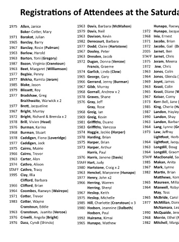 Registrations of Attendees at the Saturday Te Rapa Racecourse Restaurant Dinner
